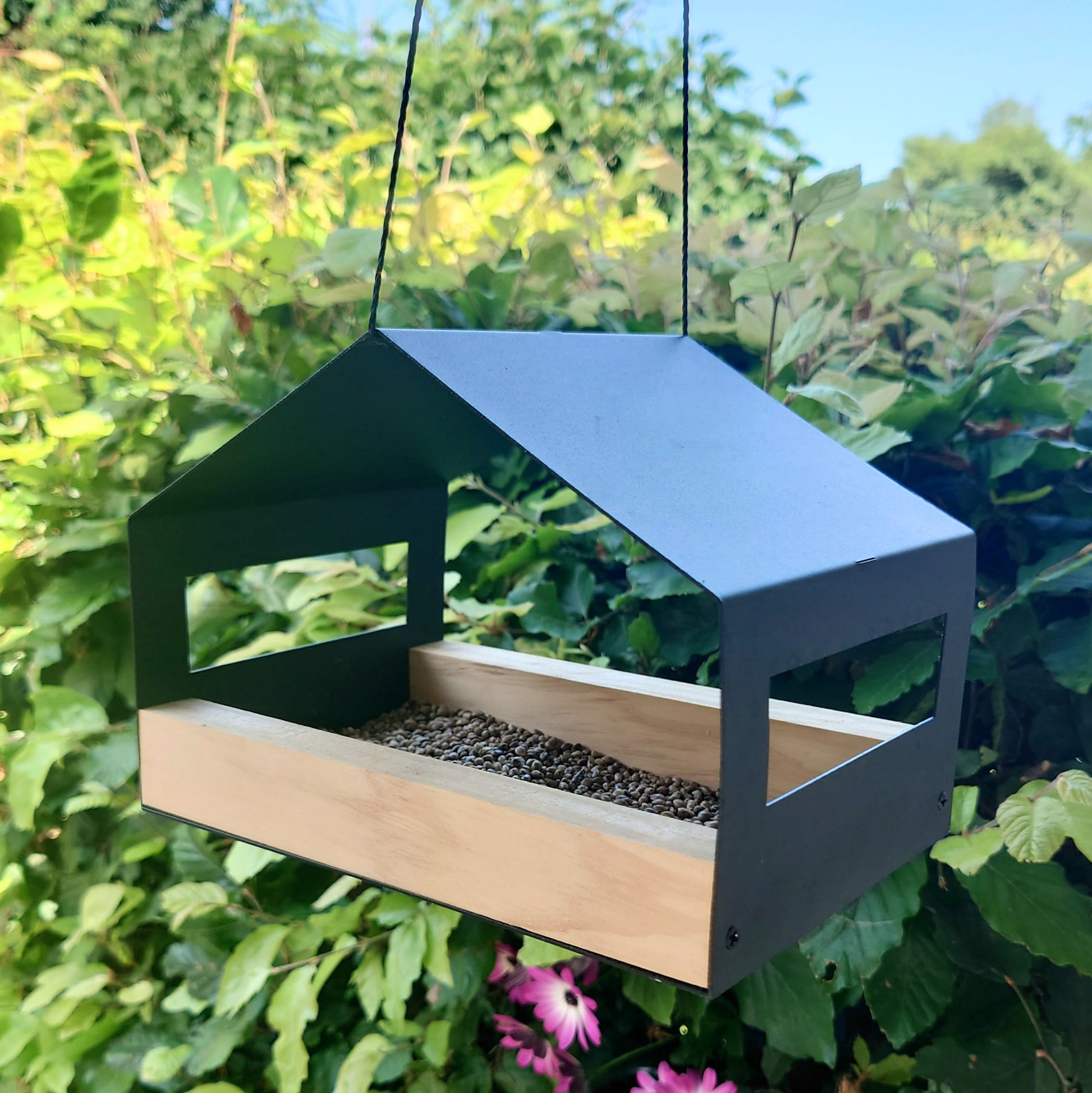 Materiale: Lavet af holdbart, sort metal, er Fugle Hygge Huset robust og vejrbestandigt, hvilket sikrer langvarig brug og beskyttelse mod elementerne. Det sorte metal tilføjer et elegant og tidløst udseende, der passer perfekt ind i enhver have eller udendørs indretning.
